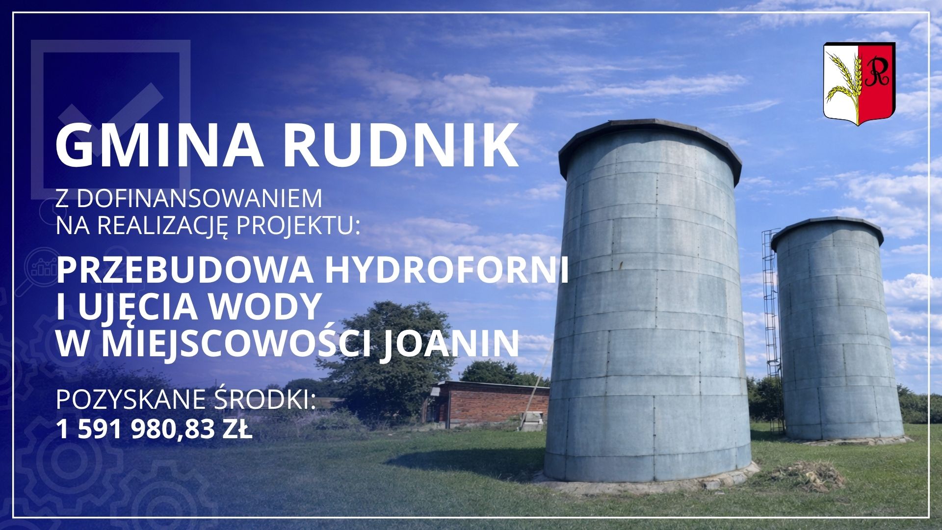 Gmina Rudnik pozyskała ponad 1,5 mln zł dofinansowania na realizację inwestycji polegającej na przebudowie hydroforni oraz ujęcia wody w miejscowości Joanin. Środki pochodzą z funduszy europejskich.